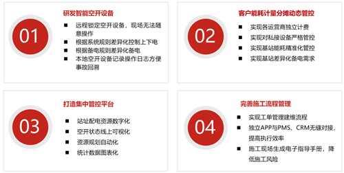 目前該創(chuàng)新產(chǎn)品已在鐵塔某省分公司的部分基站完成試點(diǎn)測(cè)試。試點(diǎn)結(jié)果表明,創(chuàng)新型智能配電單元可以同時(shí)適用在宏基站和拉遠(yuǎn)站,并滿足鐵塔配電資源的高效管理與分配、運(yùn)營(yíng)商設(shè)備分路差異化備電、運(yùn)營(yíng)商設(shè)備分路精準(zhǔn)獨(dú)立計(jì)量、運(yùn)營(yíng)商設(shè)備分路遠(yuǎn)程上下電,鎖定、解鎖設(shè)備等需求,解決存量站點(diǎn)5G改造的難題。